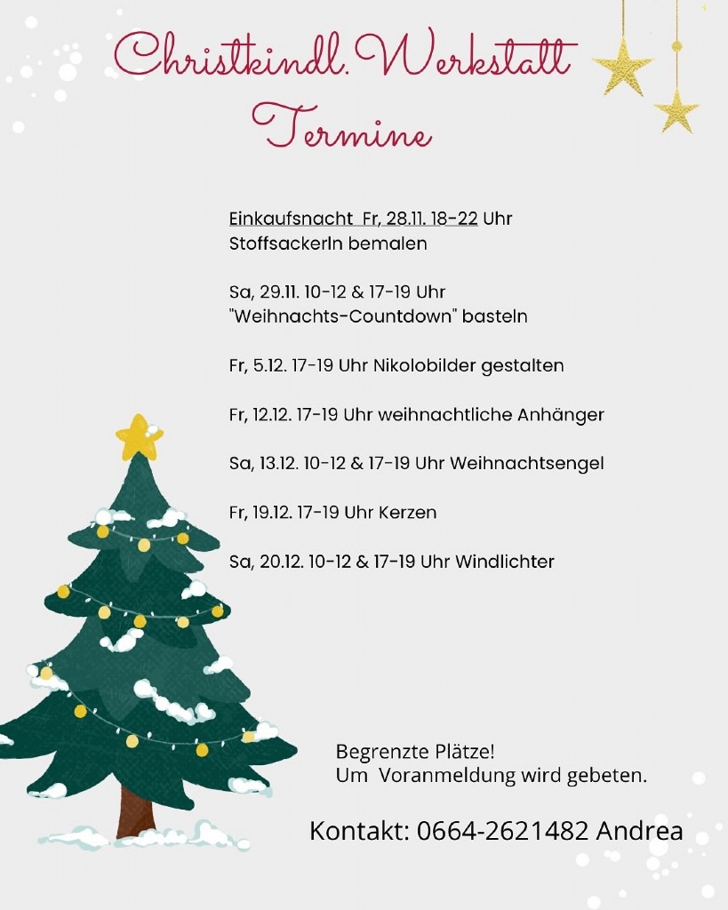Sa, 29.11. 10-12 & 17-19 Uhr Weihnachts-Countdown" basteln